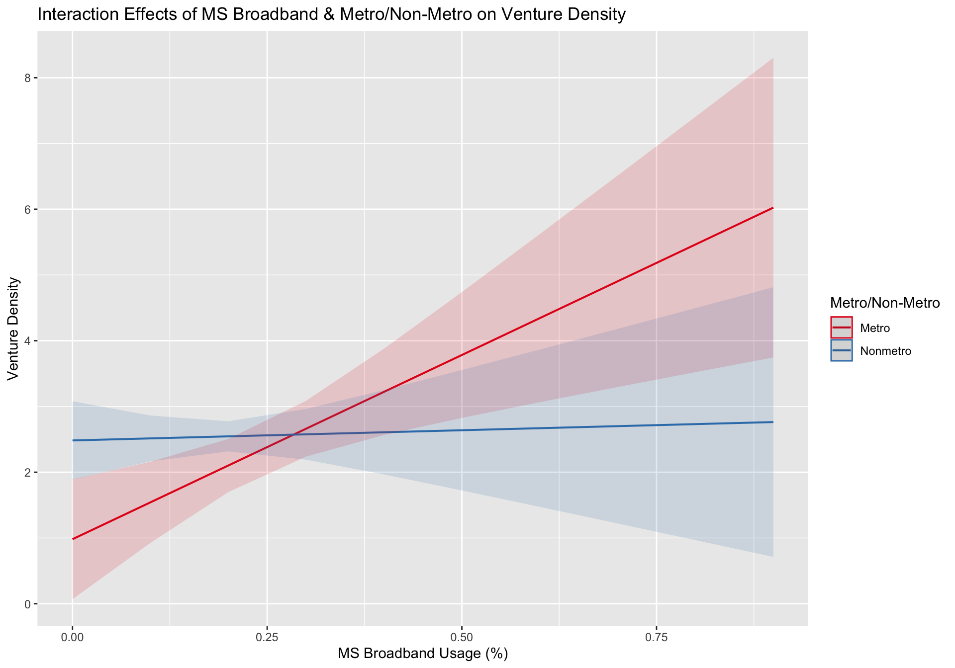 In this section, we will analyze the effect of metro and non-metro area distinction to the relationship between broadband and entreprneurship. In other words, how do the relationship between broadband and entrepreneurship influenced by whether certain county is considered metro or non-metro area? First, we address this question by including such distinction as a predictor variable in the models analyzing the relationships between broadband and entrepreneurship.